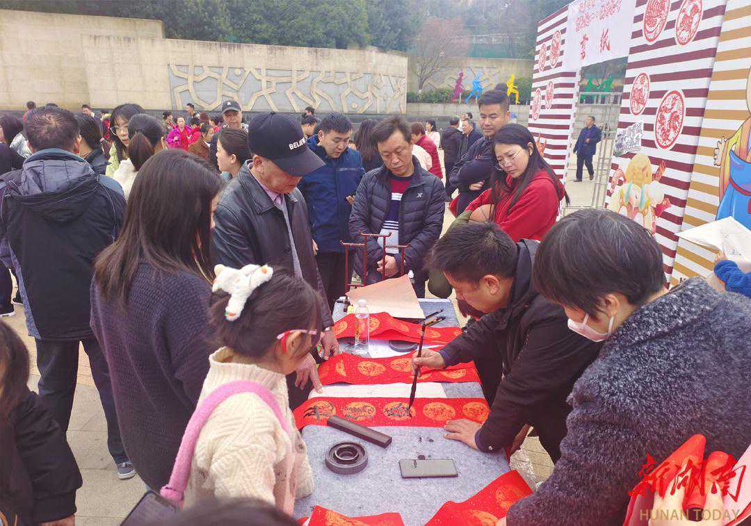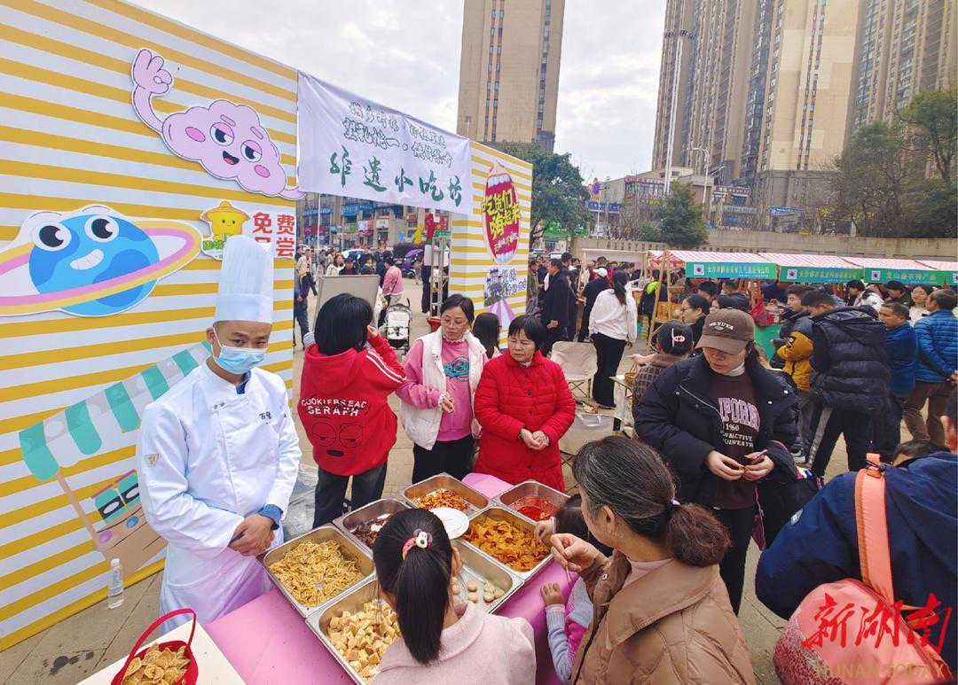 现场人头攒动,非遗小吃坊,市民边免费品尝小花片、甜酒、腐乳、坛子菜等“非遗”小吃,边体验围炉煮茶的冬日乐趣;“寻味集市”直播间,工作人员在镜头前热情洋溢地推介望城特色农副产品;民俗文化活动体验区,大家兴致勃勃地体验剪纸、书法、投壶等传统民俗文化活动。更多的市民边试吃边认真挑选自己心仪的年货产品,大包小包收获满满。