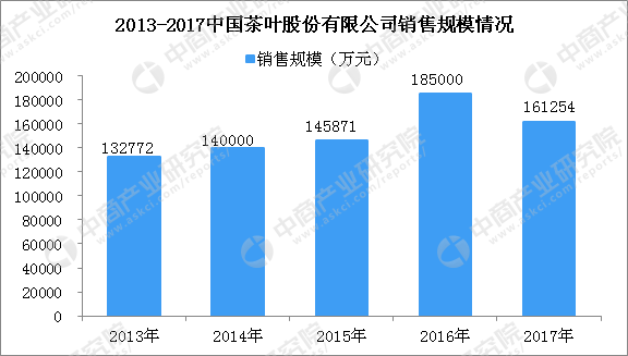从销售规模来看,2017年中国茶叶股份有限公司销售规模为161254万元,比2016年下降了23746万元。