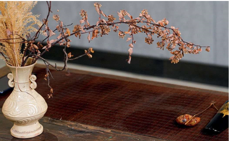 在摆设比较正式的茶席时,有时需要用到插花。茶艺的插花可以是干花,也可以是鲜花,但是整体上不要过分艳丽。尤其是干花,因为它还是难于和自然之花相比,所以尤其注意不要选择花头较大的干花,而应选择比较自然的干芦苇、枯枝等。