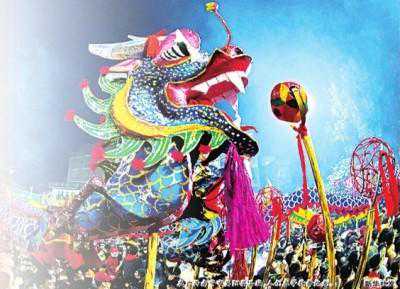 中国人崇拜龙,祭祀龙,画有龙图腾,建有九龙壁,连高耸的华表上也雕刻有腾云驾雾、盘旋升空的飞跃龙。这还不够,每逢节日,欢天喜地的人们都会拿出看家的本领,表达兴奋心情,营造节日氛围——跑竹马、划旱船、耍狮子,而最为吸引眼球的表演当数舞龙灯。