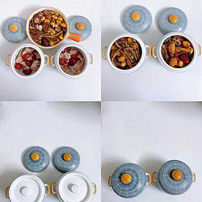2、鸡肉焯去血水沥干水份,放入炖罐把所以食材加进去,在加入纯净水。