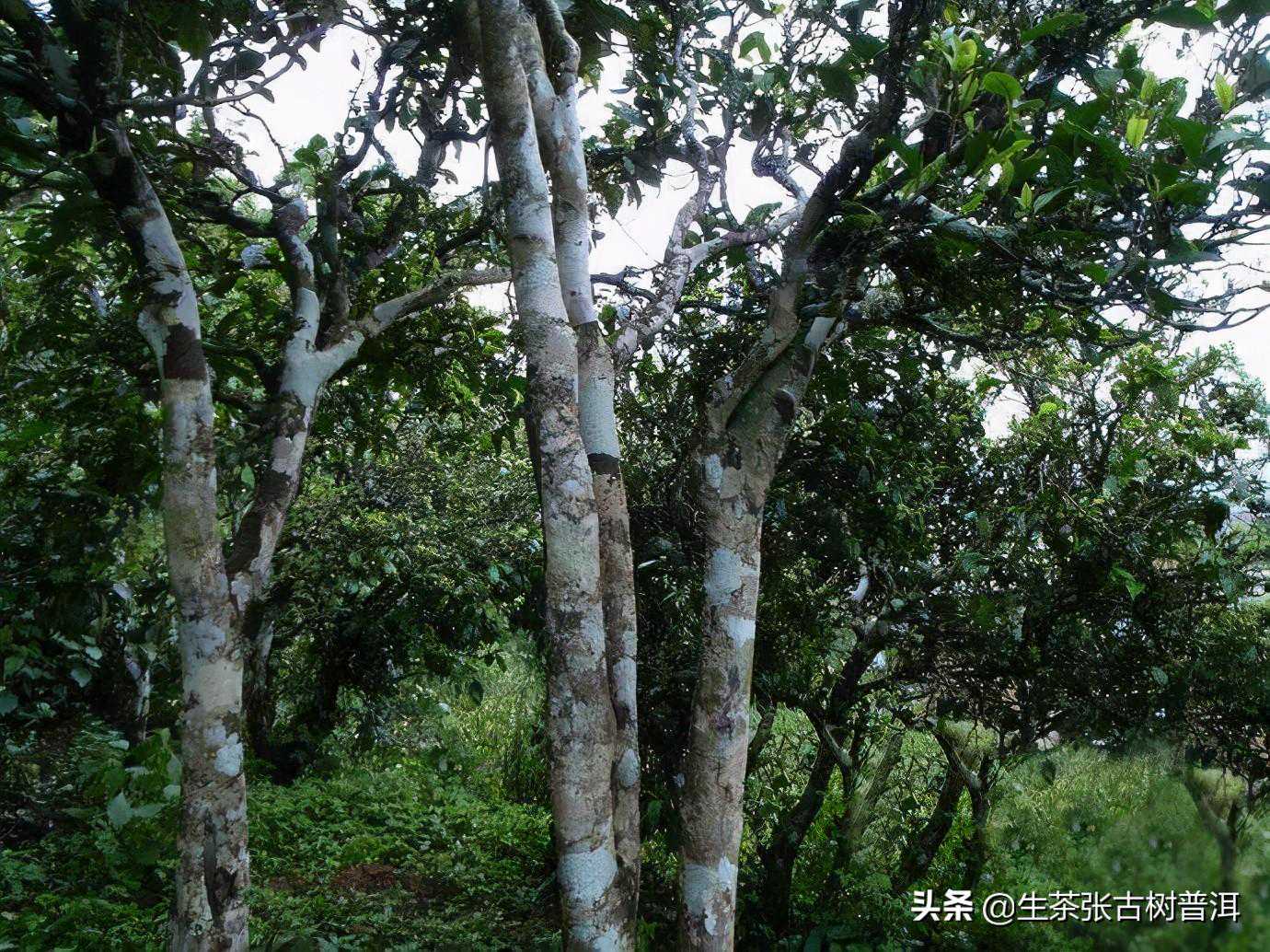 在密林中,所有的树干上都有厚厚的一层苔藓植物,所以所有的树干看上去都是一样的,根本分不出来哪棵是古茶树。