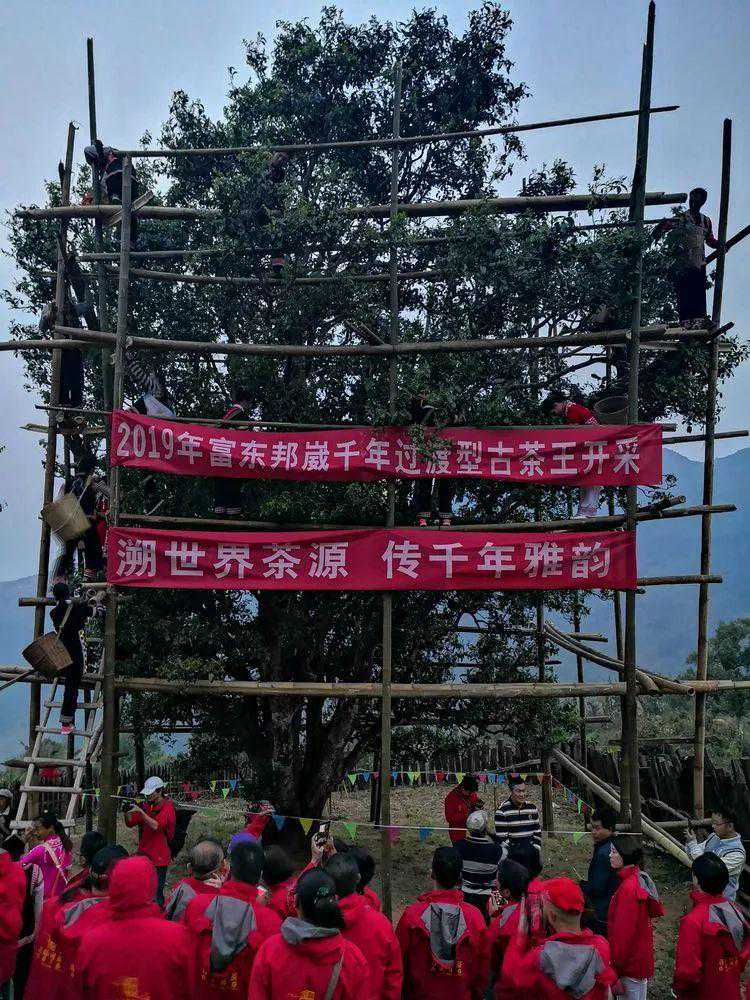 邦崴千年过渡型古茶王于2019年3月28日早上7:00在普洱市澜沧县富东乡邦崴村新寨组进行采摘。今年邦崴茶王树共采得鲜叶29.4公斤。