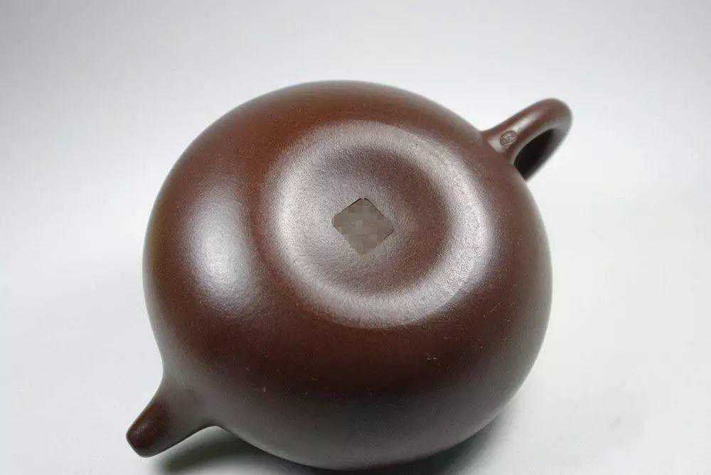 西施壶通身丰润饱满,壶流短而粗,壶把向外回转呈倒耳形,截盖(将壶上端切开,截下部分直接做盖,盖合后外形完整)球形钮,壶底则为微微内凹的一捺底。