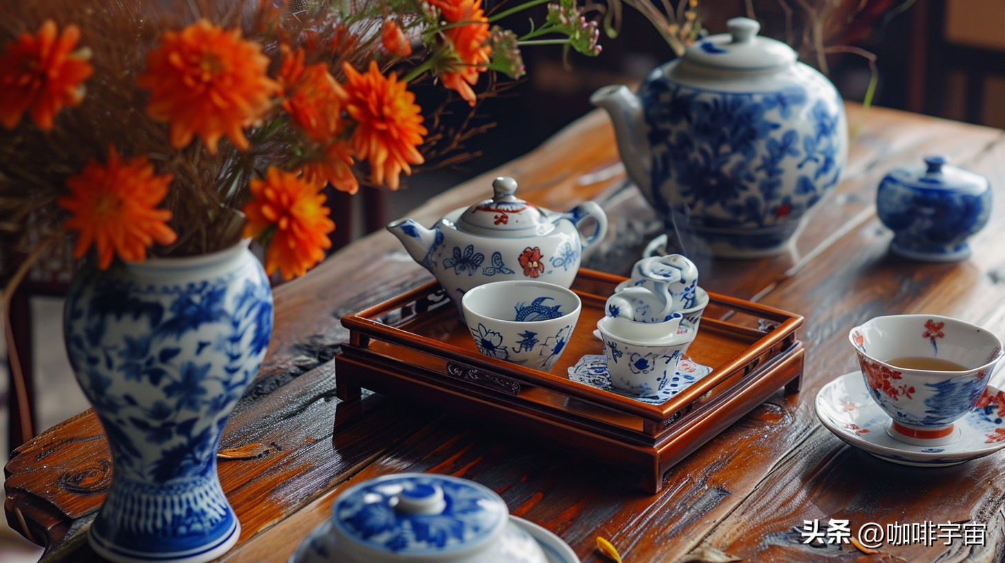 奢华的盛宴在这个画面中得以体现,各色茶具摆放整齐,每一道都散发着诱人的香气。这是一场视觉和味觉的盛宴,让人沉醉其中。木桌的质感和富士胶片的拍摄技法使整个场景更显古典而迷人。