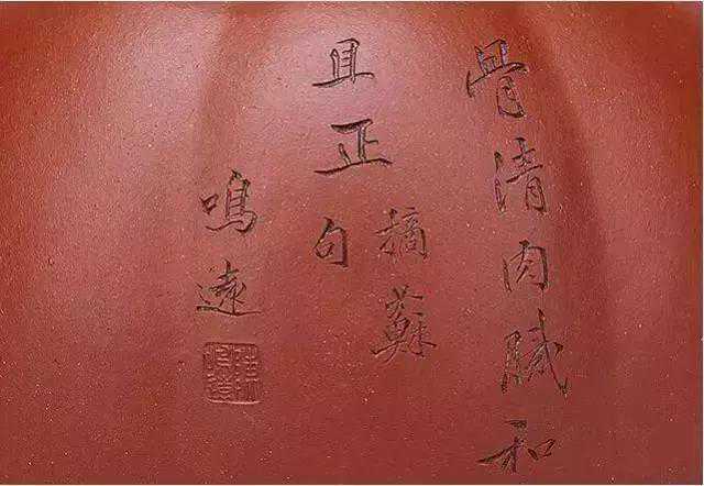 我们首先看两个刻款,陈鸣远的壶,素以书法刻款健雅而名,被赞有晋唐之风。