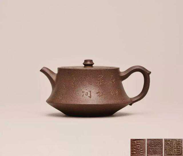 在明朝的时候,紫砂壶的款印体系还没有成熟,可见的时大彬传世壶,皆是以竹刀在壶底刻的款,而印款,则是在后来才出现的。