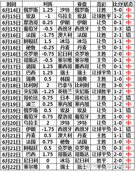 最后需要提醒的是丹麦VS法国、塞内加尔VS哥伦比亚两场比赛难度超大,目前的盘赔类型有些类似,只不过平赔搭配迥异,本单采取同时防冷负和冷平处理,在极端情况下至少得保证对一个,确保二等奖。