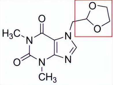 多索茶碱是茶碱N-7位上接1,3-二氧环戊基-2-甲基的衍生物,比传统药物氨茶碱疗效高且毒性低。