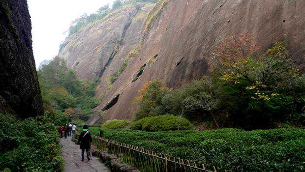 九龙窠(kē)为茶王“大红袍”原生地---通往天心岩的一条深长峡谷,俗名大坑口。峡谷两侧峭壁连绵,逶迤起伏,形如九条龙。人们遂把峡谷喻之为游龙的窠穴,故名。