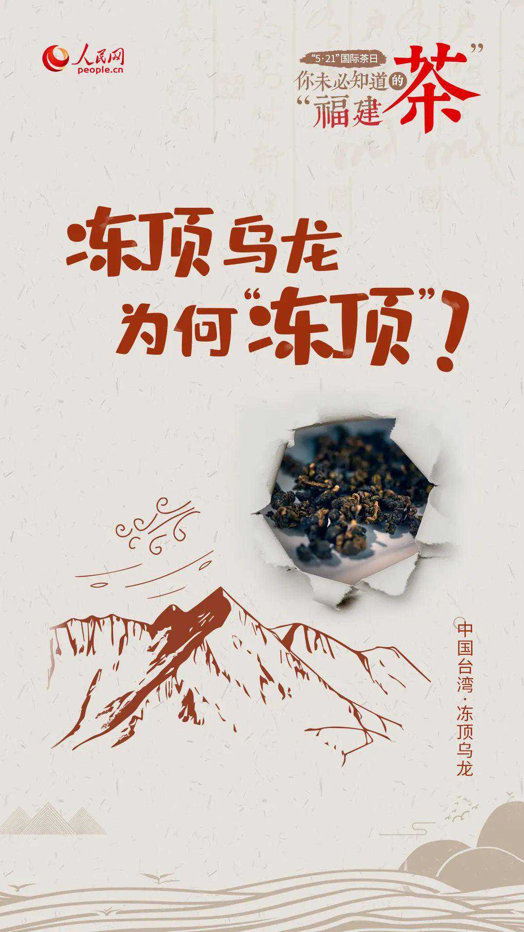 相传清咸丰年间,台湾南投鹿谷乡人林凤池赴福建应试,高中举人,还乡时从武夷山带回36株青心乌龙茶苗,其中12株种在冻顶山上。冻顶山,属于凤凰山的支脉,海拔700米以上,常年山雾多路又滑,上山去的人都要绷紧足趾,台湾俗语称为“冻脚尖”才能避免滑下去,便有了山顶叫“冻顶”,山脚叫“冻脚”的说法。茶,亦因山而名。
