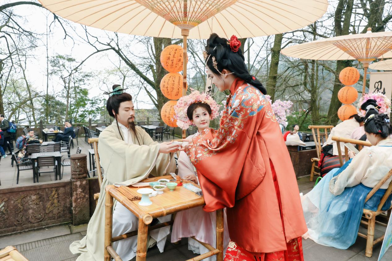 四川新闻网消息(袁洋)为传承和弘扬中华传统优秀文化,初春之际,雅安文旅集团蒙顶山景区围绕“国潮蒙顶山”主题,以茶为媒、国风为体,将汉服元素融入茶文化,为大众打造“可视、可听、可触、可感”的传统文化。