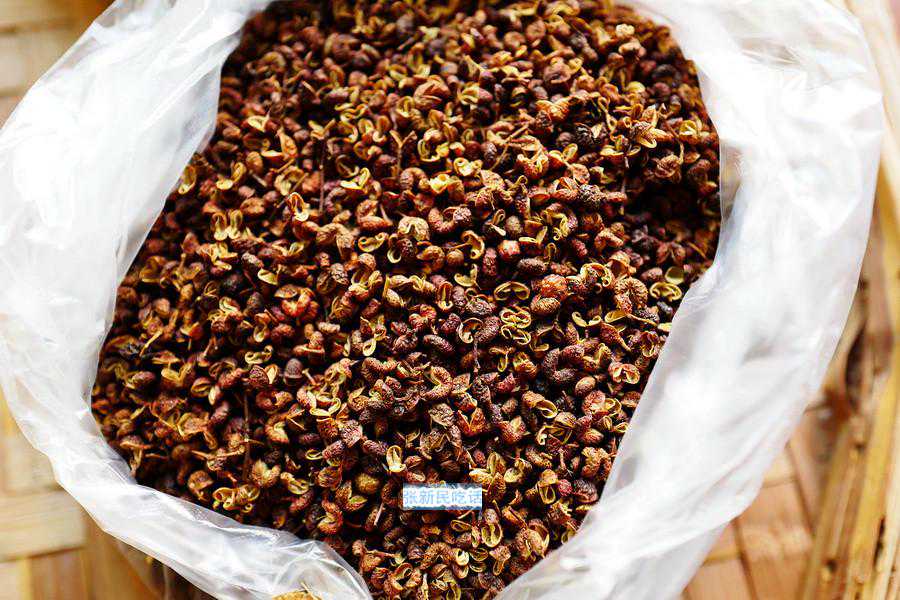 五香配料,自上至下为花椒、辣椒、大茴、小茴和桂皮。
