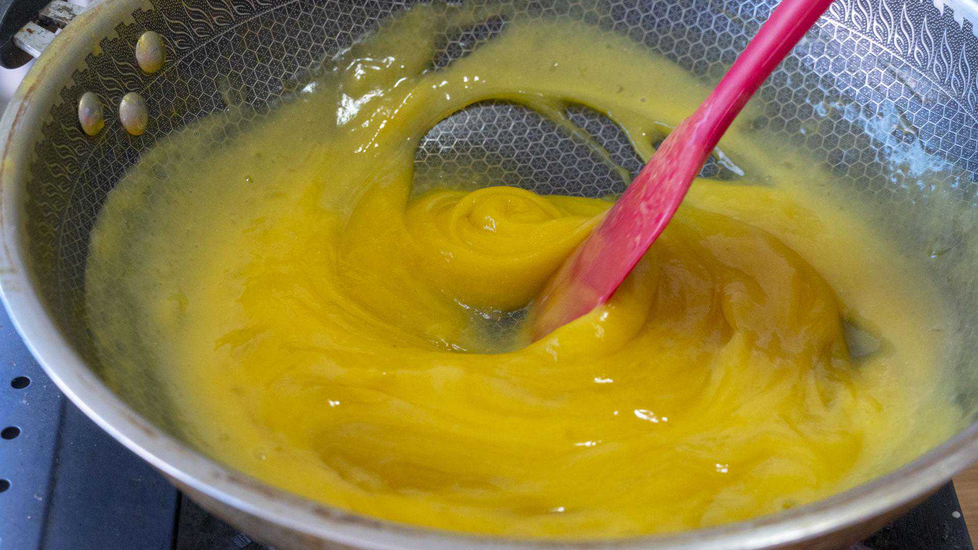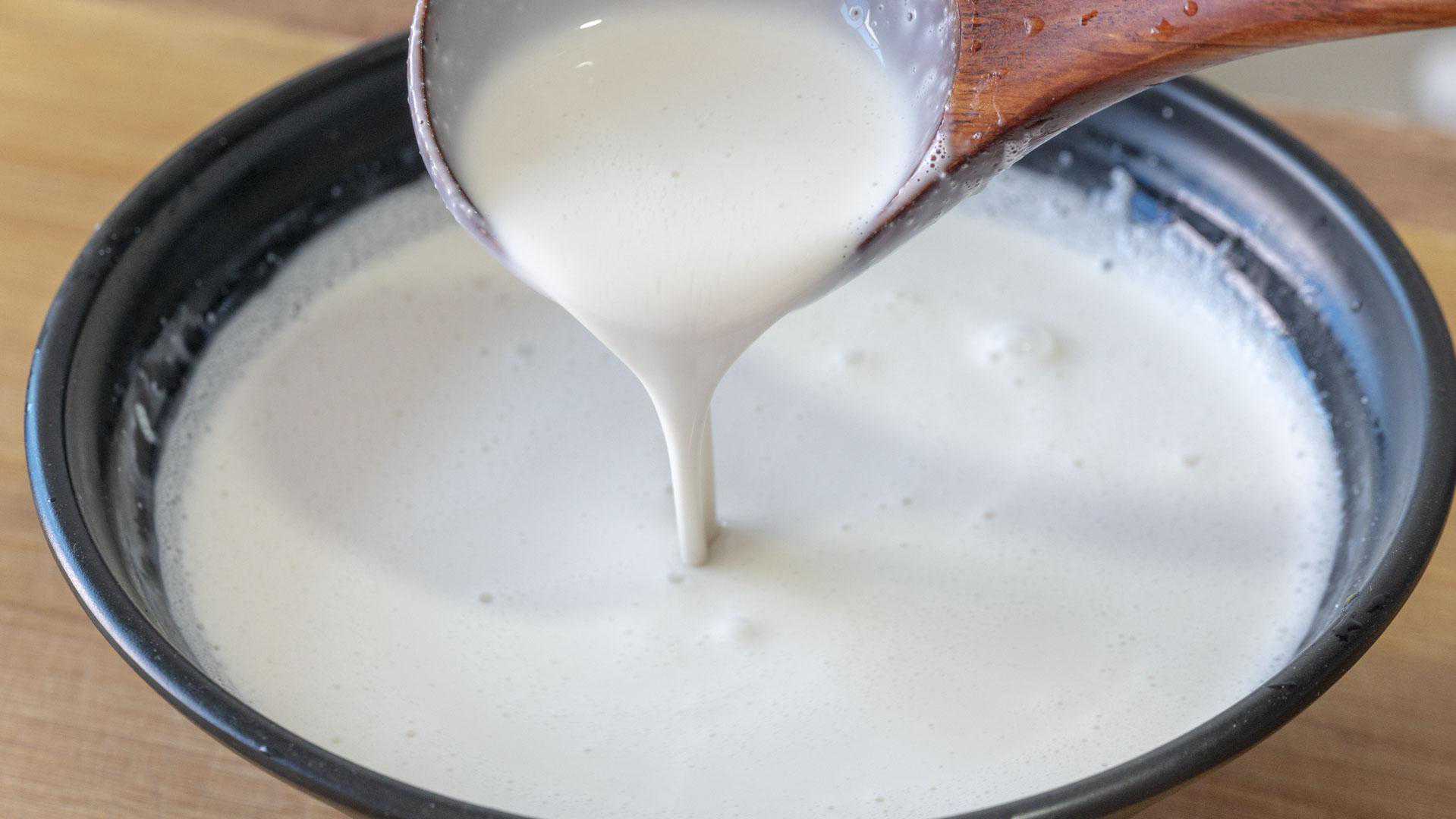 8、这个粉浆里面有牛奶和椰浆,不用烫浆也能凝固。