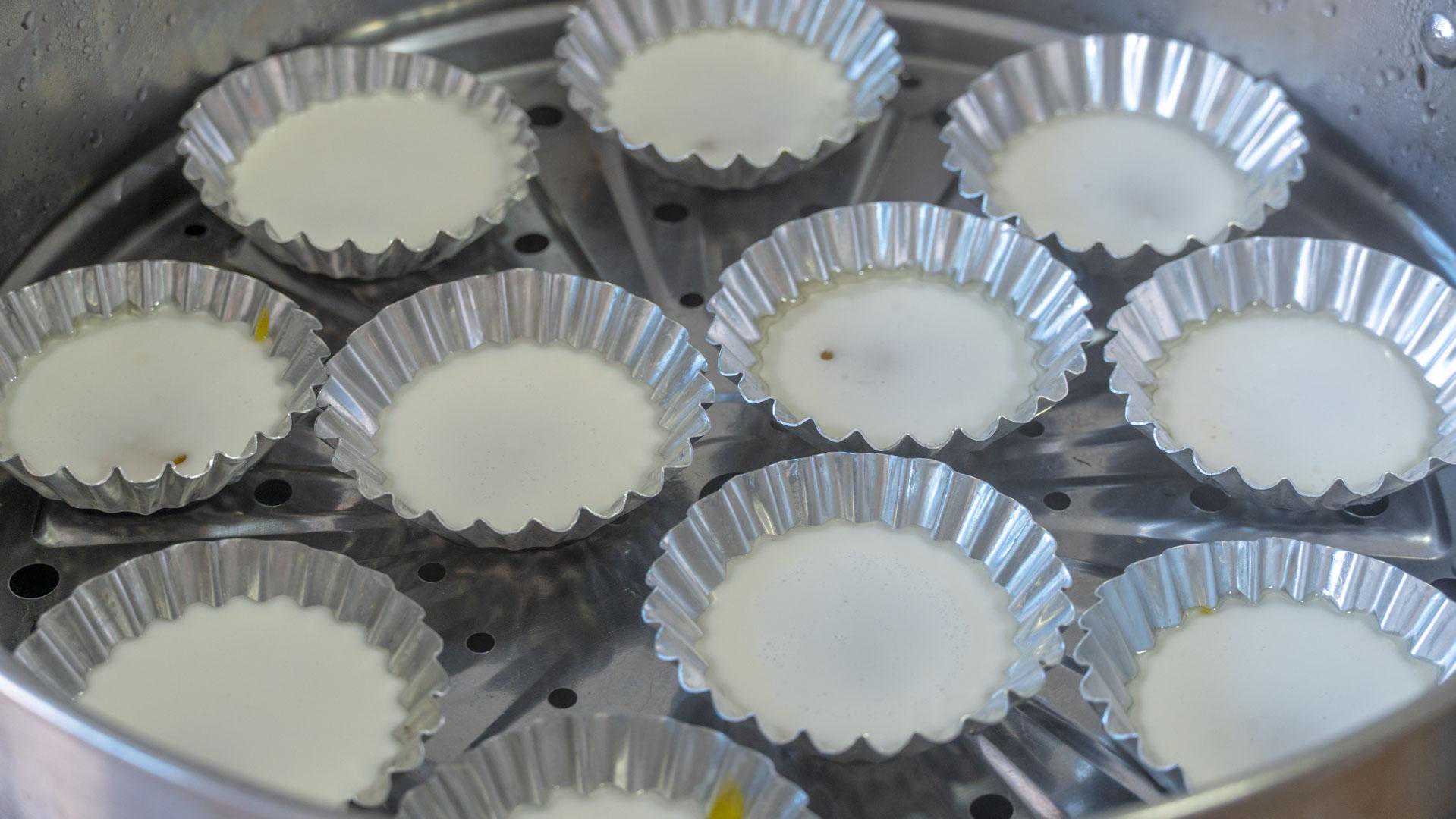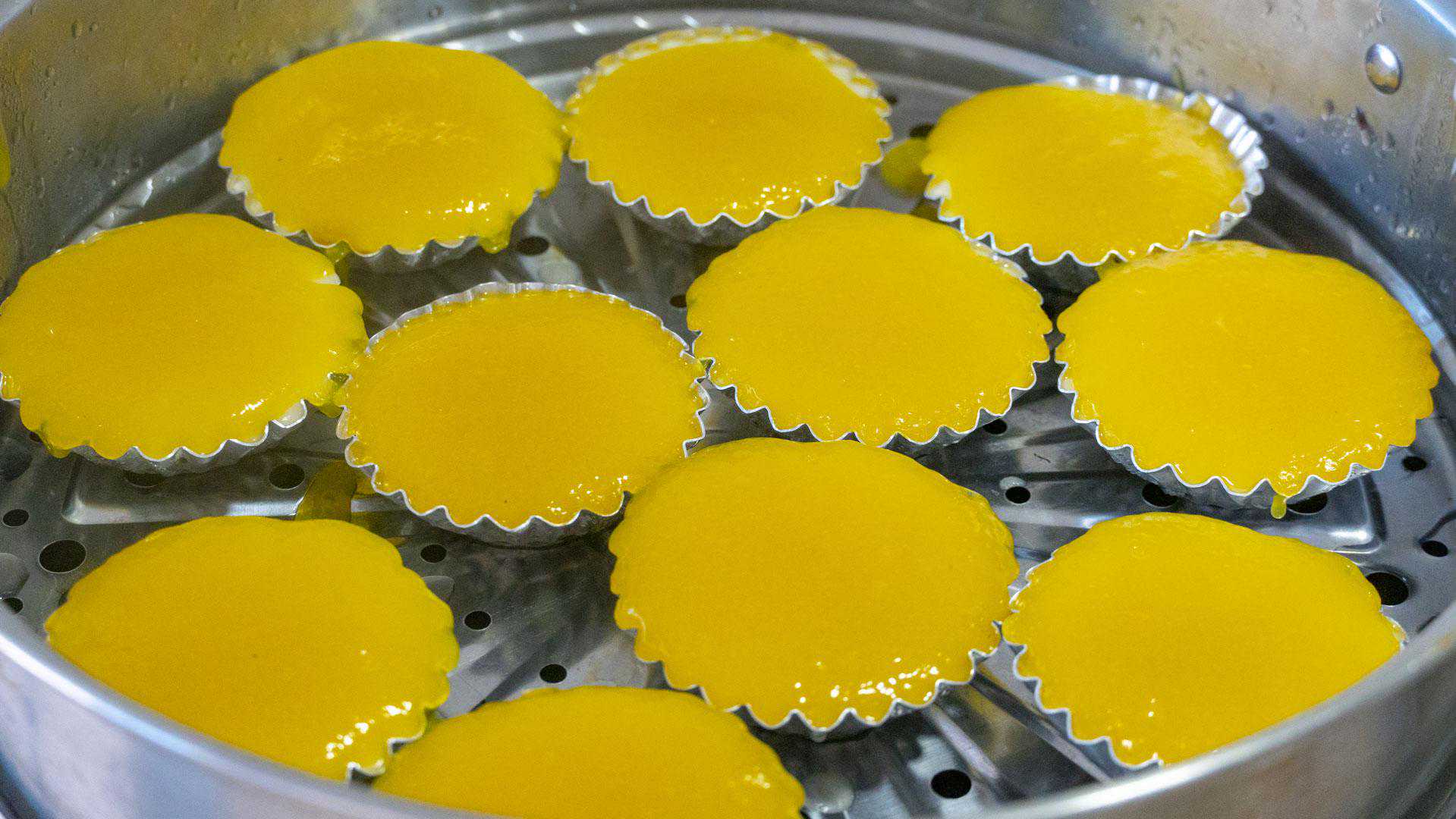 4、水开后,把盘子轻轻放到篦子上大火,大约蒸2分钟左右,关火,一开盖子会看到鼓起大包,瞬间回落的样子,这就熟了。
