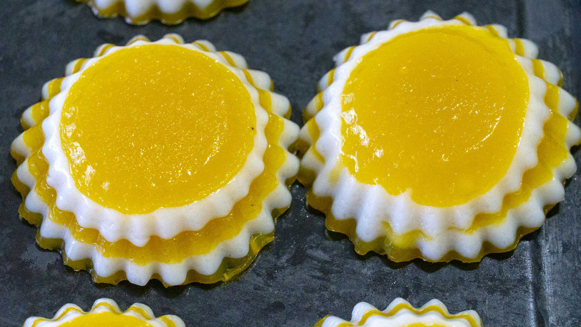 后面黄色的粉浆不多了,我就兑了一点白色的粉浆进去,所以颜色会稍微的浅了一些,但不影响口感。
