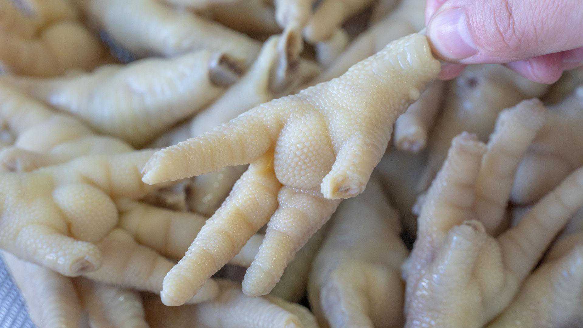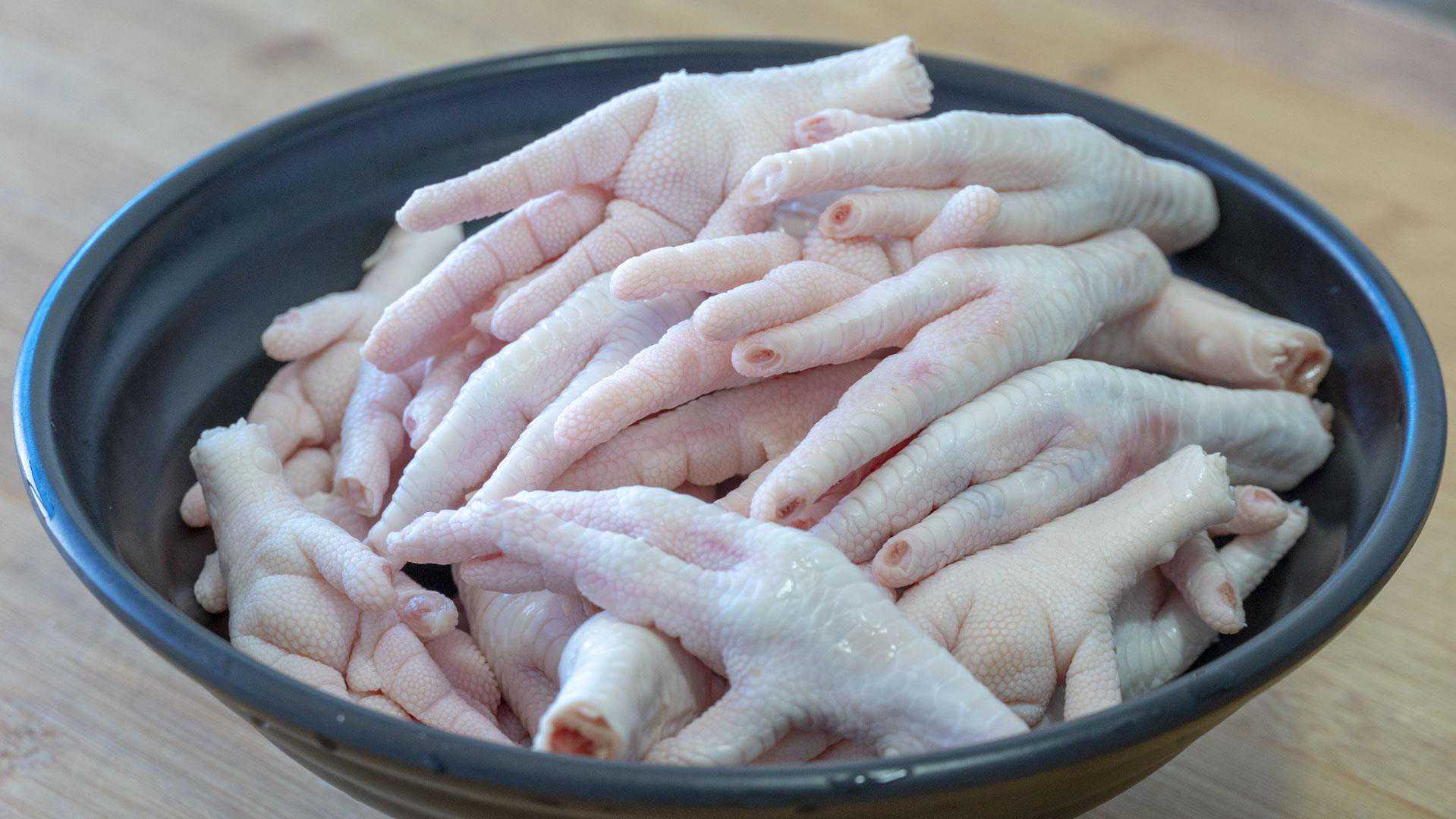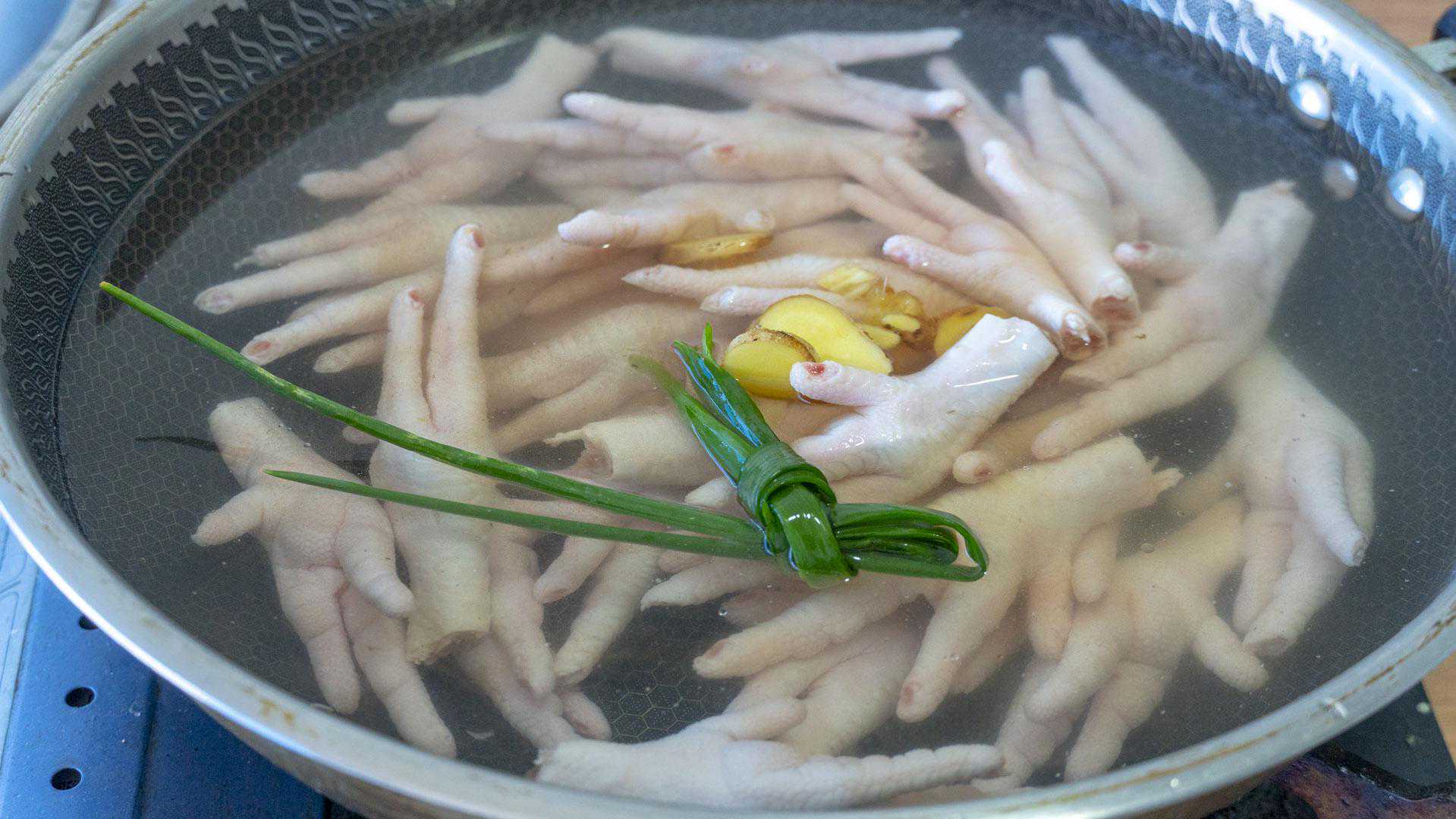 1、下面来处理鸡爪,洗干净先把鸡爪的指甲都剪掉。