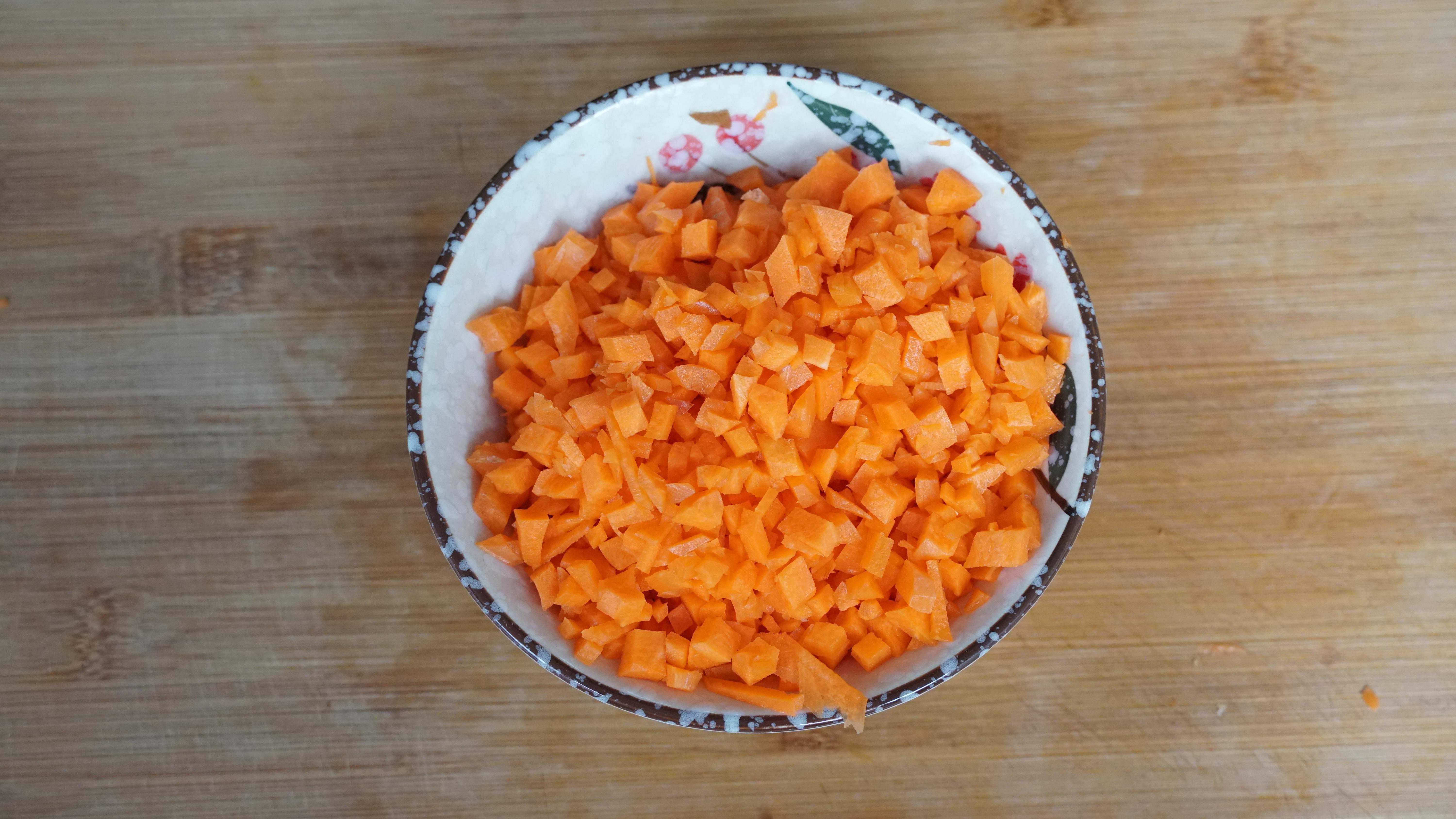 3、胡萝卜170克,切丁,香菇130克切丁。