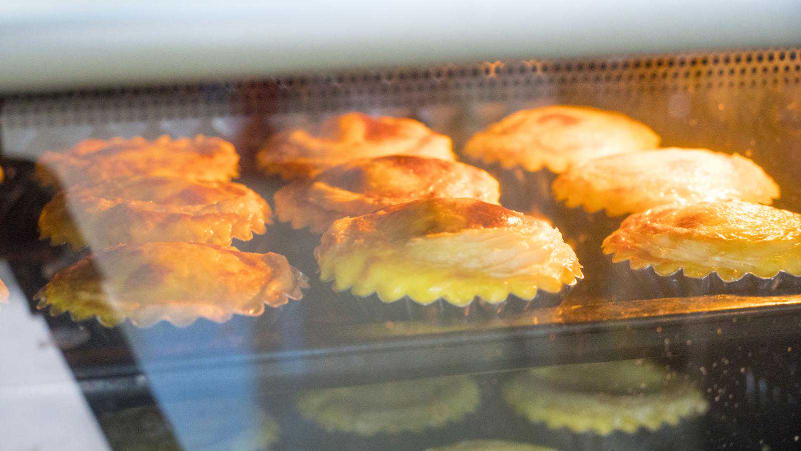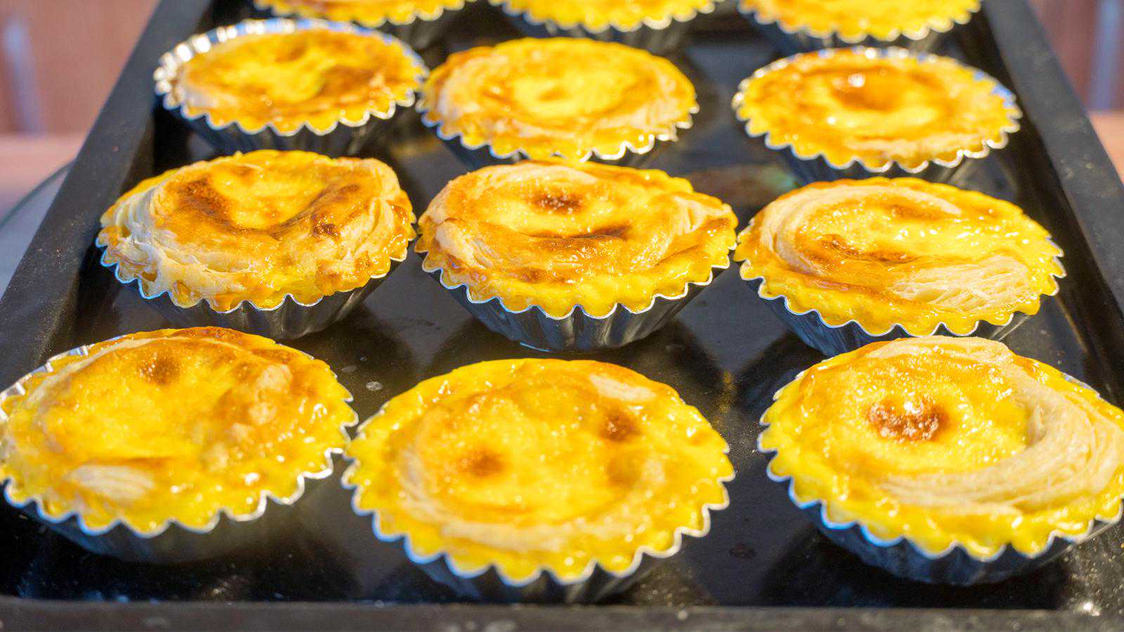 刚出炉的蛋挞是鼓鼓的,稍微的放凉一会儿再吃,外焦里嫩,非常的香