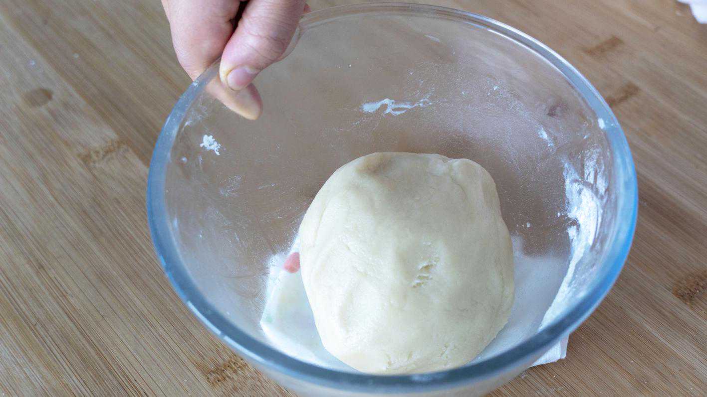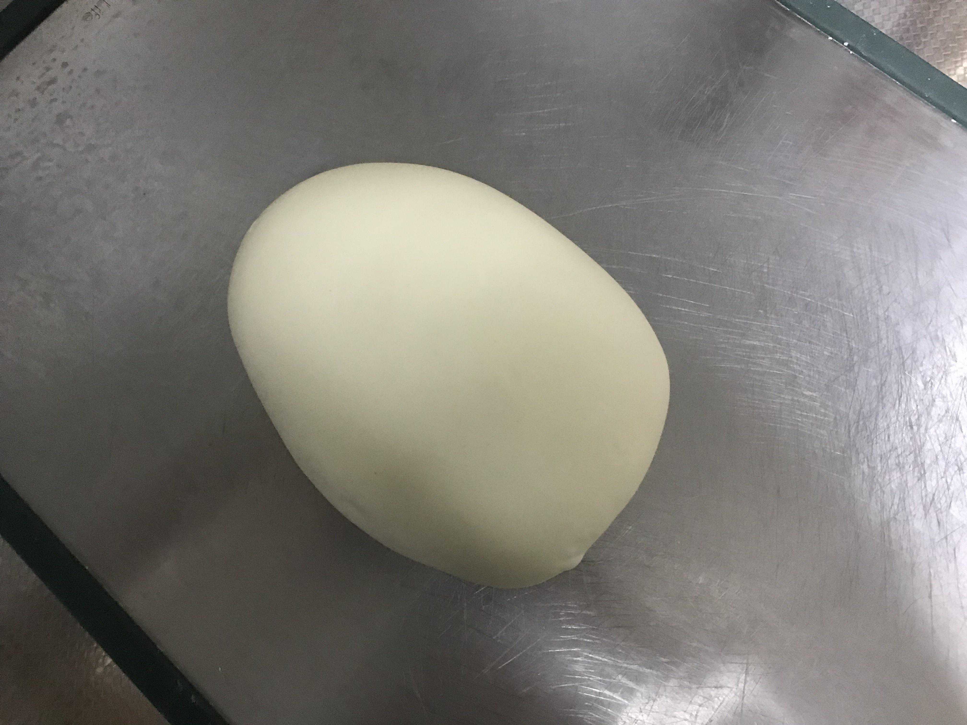 5、松弛好的水油皮面团儿是特别软的,像耳垂一般,同时也很有韧劲儿,取出来搓长条,分小面剂,我一共分了18个,直接在砧板上滚圆就可以了,盖保鲜膜静置松弛10分钟备用;