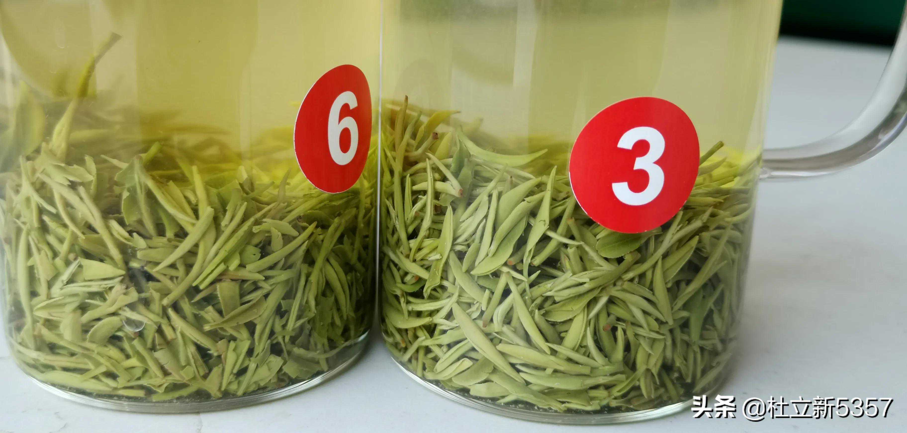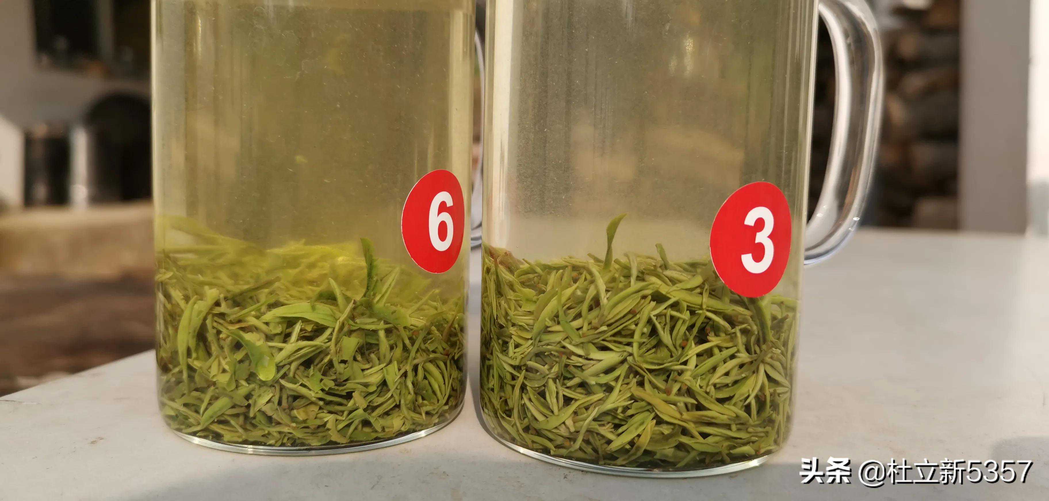 这是冲泡十分钟后小芽和中芽对比的照片