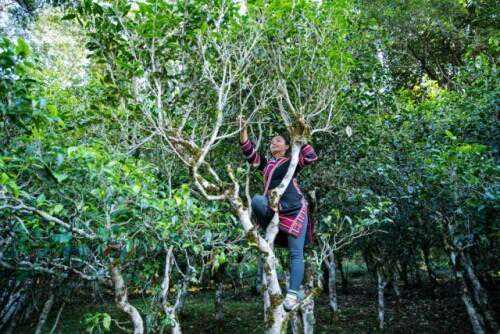 南本老寨村民李旋家有50多棵古茶树。她说:“作为茶农,我们要保护好这里的一草一木,尤其保护好这里的古茶树,按时除草、除枯枝,不过度采摘。”