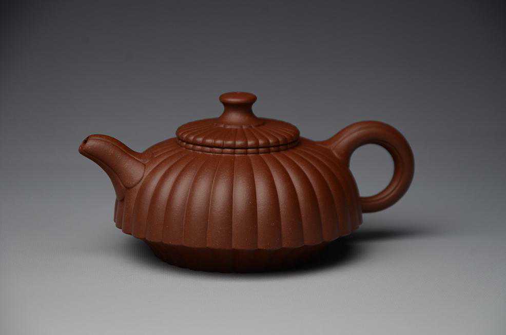 筋囊器是在传统茗壶的基础上创造出来的一种花式造型艺术,它的造型基本特征是依照自然的瓜果的形态、花瓣的筋囊和纹理,进行图案化、规则化,将壶体均匀等分为若干份,讲究整体的协调性和线条的流畅性,表现出强烈的韵律美。