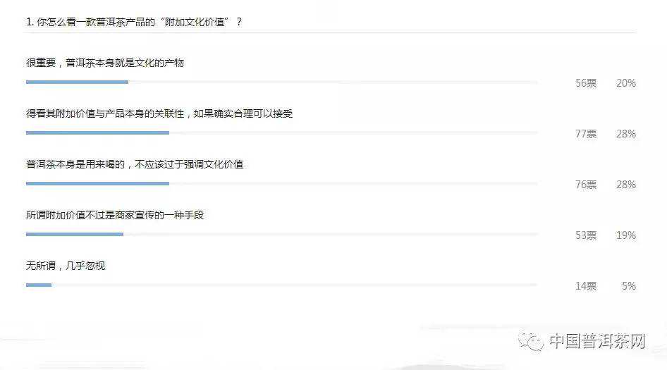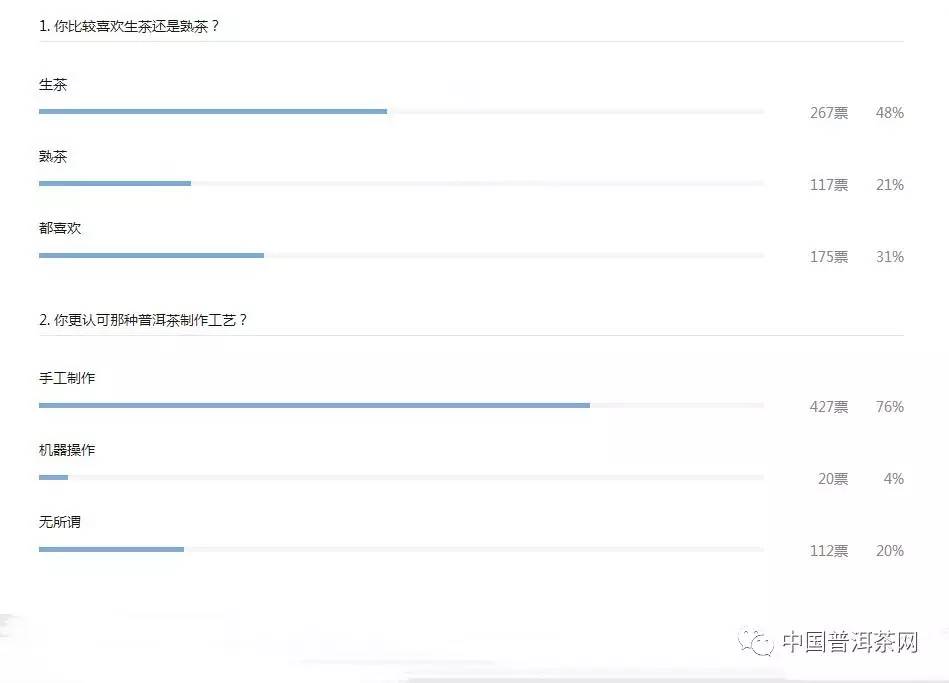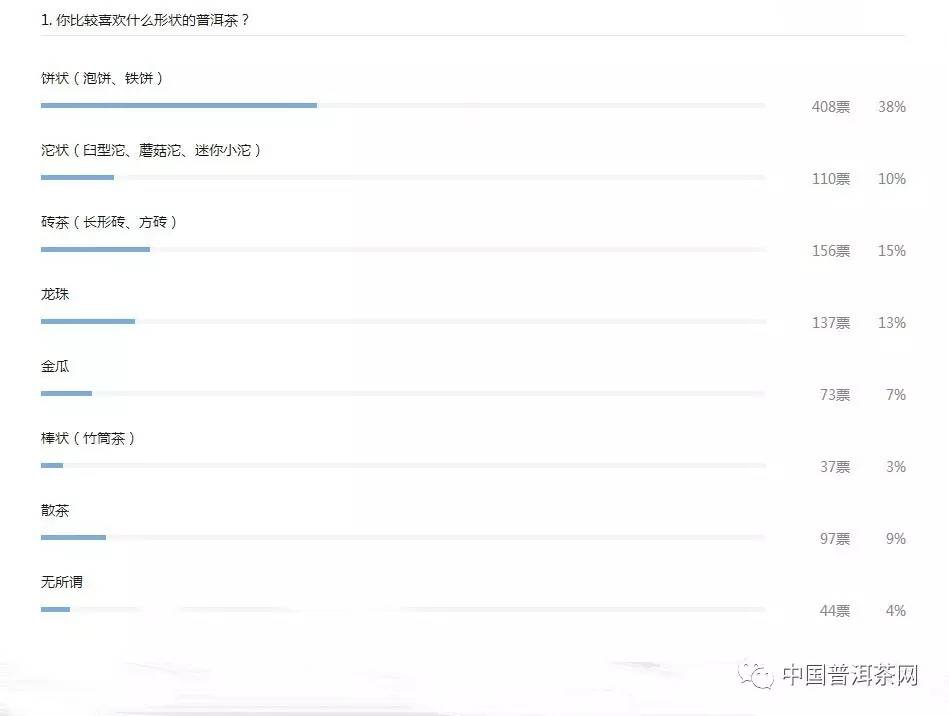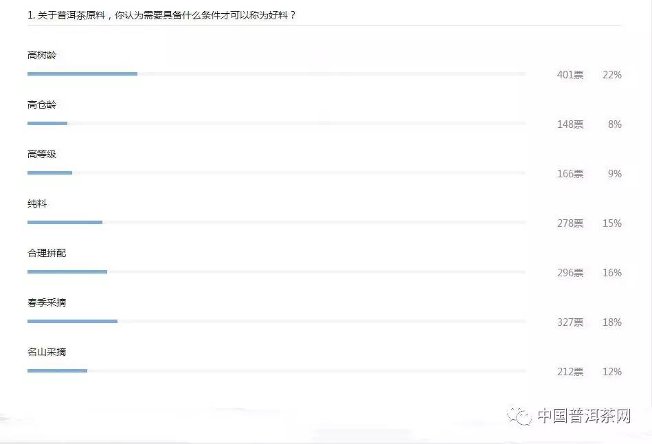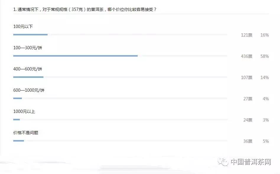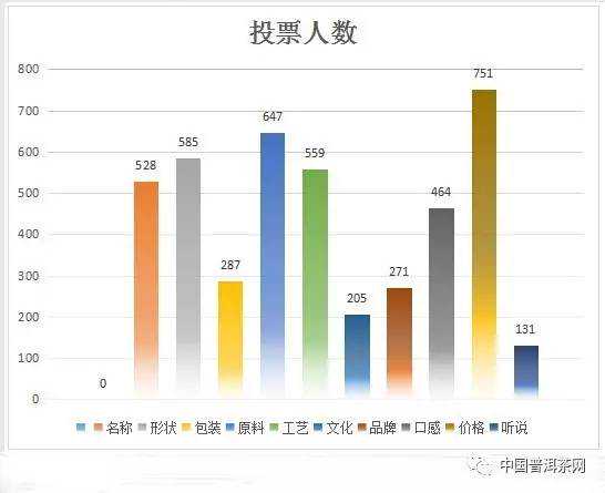 从投票参与度中不难看出,价格是人们比较在意的一个因素,而100——300元/饼的价格是大部分人比较中意的一个价格,过高的价格往往会让很多人放弃一款普洱茶。