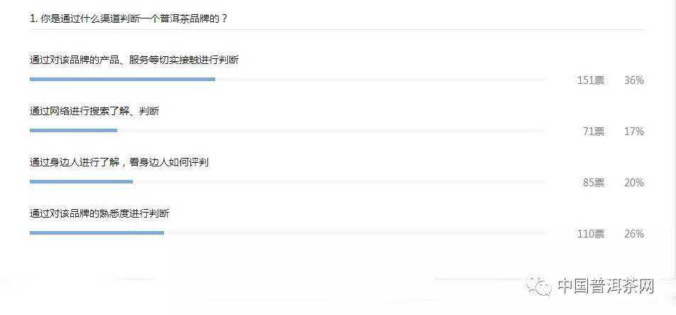 至于普洱茶品牌的话,大部分人会根据自己切实了解的品牌情况、熟悉度来进行选择,当然也有部分人会根据身边人的意见来进行判断。不过从参与投票的人数来看,这一因素对于消费者的影响并不是很大。