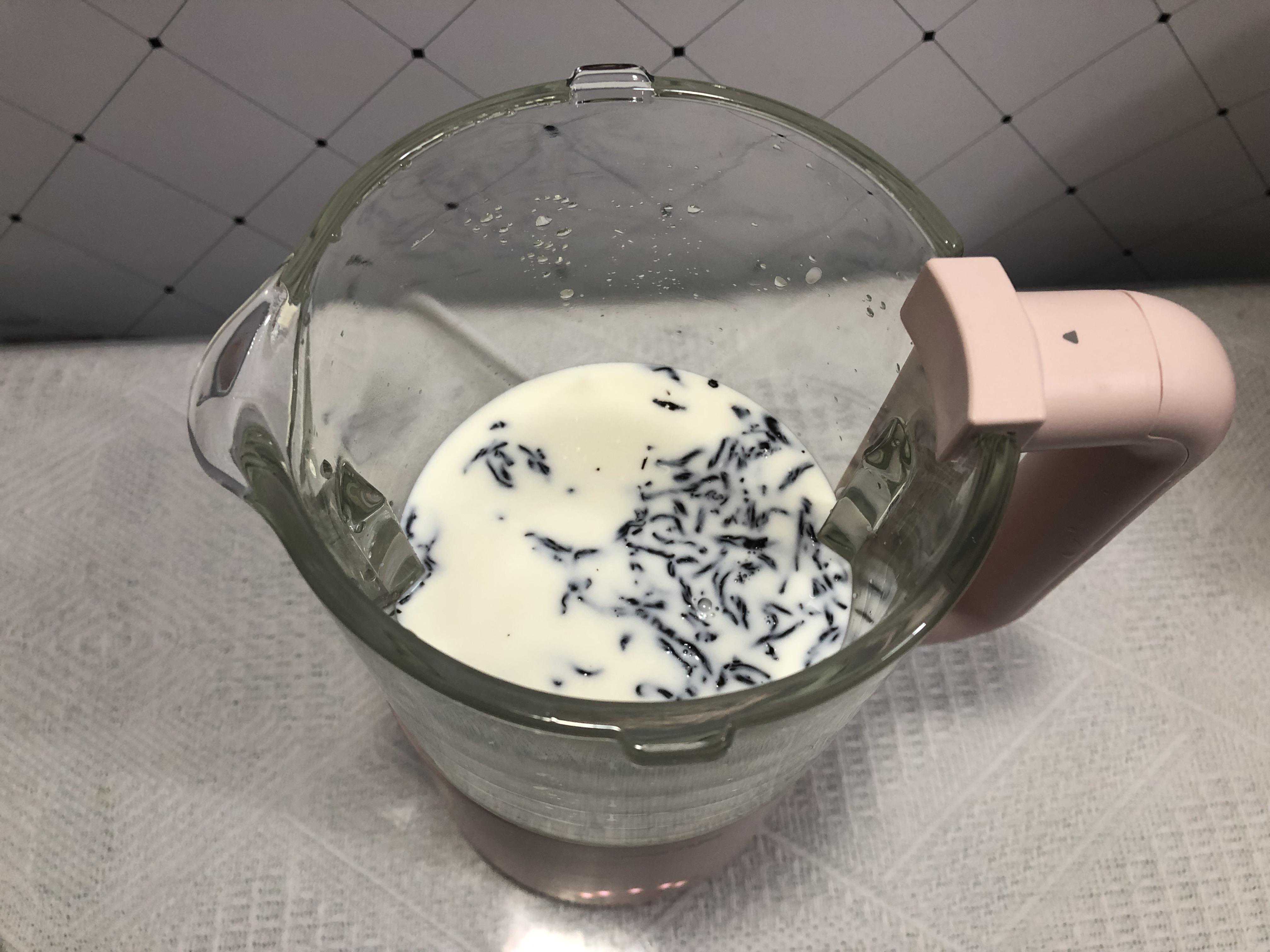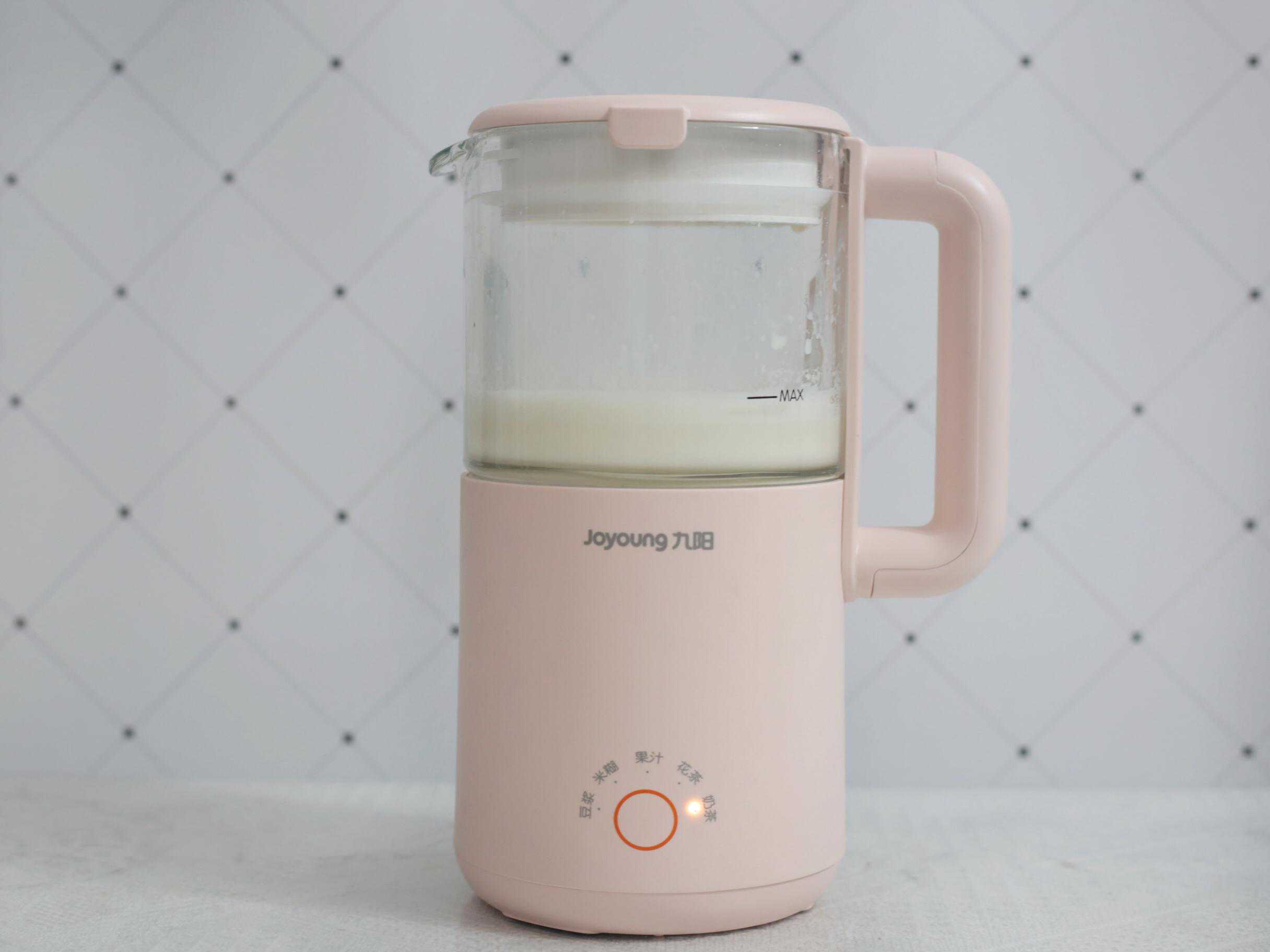 第四步:将红茶叶、白砂糖、牛奶一起倒入九阳豆浆机中。