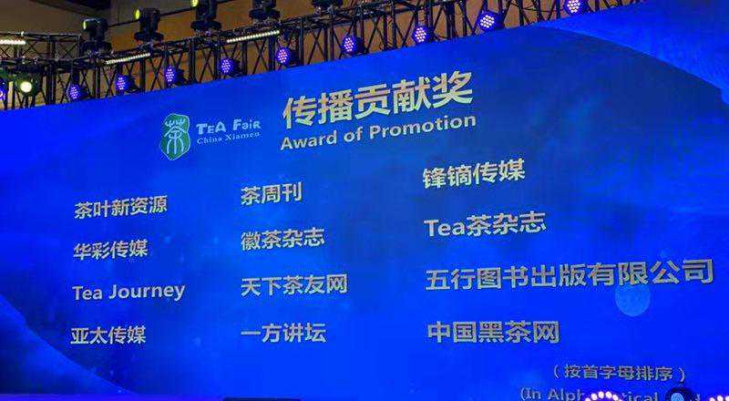 在本次展会活动期间,中国黑茶网被组委会授予“厦门国际茶博会十周年传播贡献奖”。这是主办方对中国黑茶网多年来在传播过程中的充分肯定。中国黑茶网也将继续与厦门国际茶博会全面合作,努力将这一业内专业的展会推介给茶界朋友,助推厦门茶博会成为全球茶产业专业采购平台。