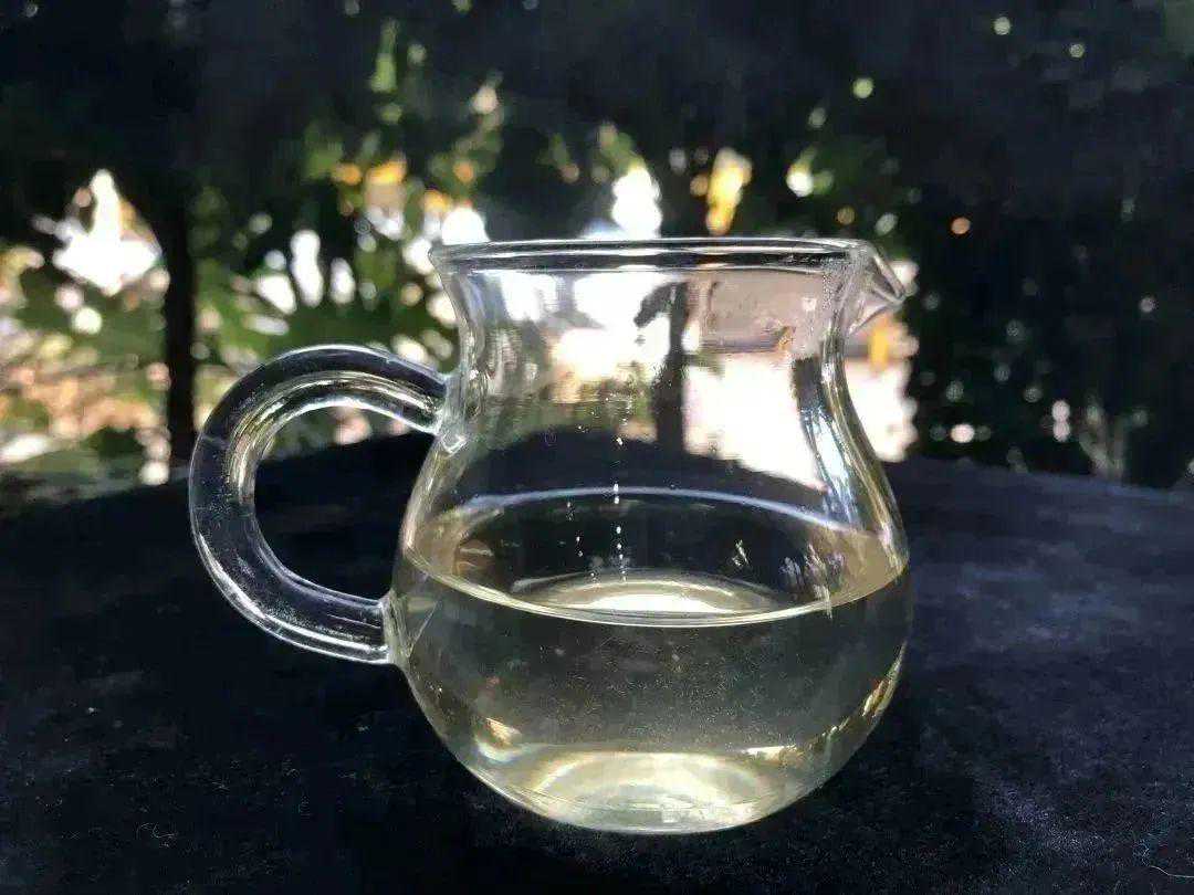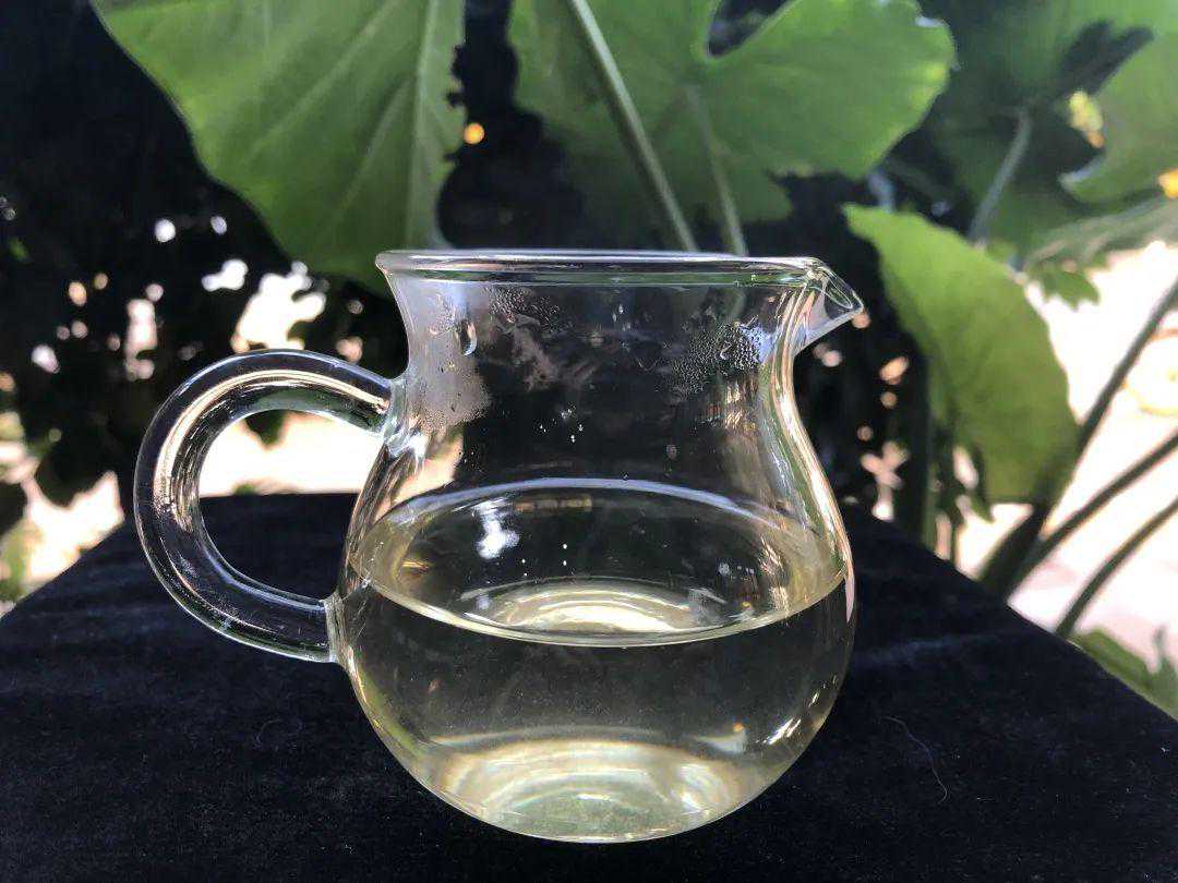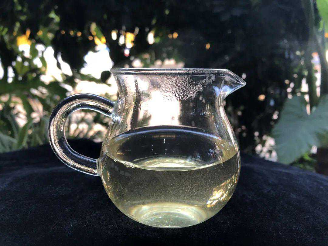 茶汤呈淡黄色,透亮度不错,有些许绒毛悬浮于茶汤之中,这是正常现象。茶汤香及挂杯香都很浓郁,香型呈花蜜香中带有一股特殊的奶香味,和冰岛产区的茶香有较高的相似度。