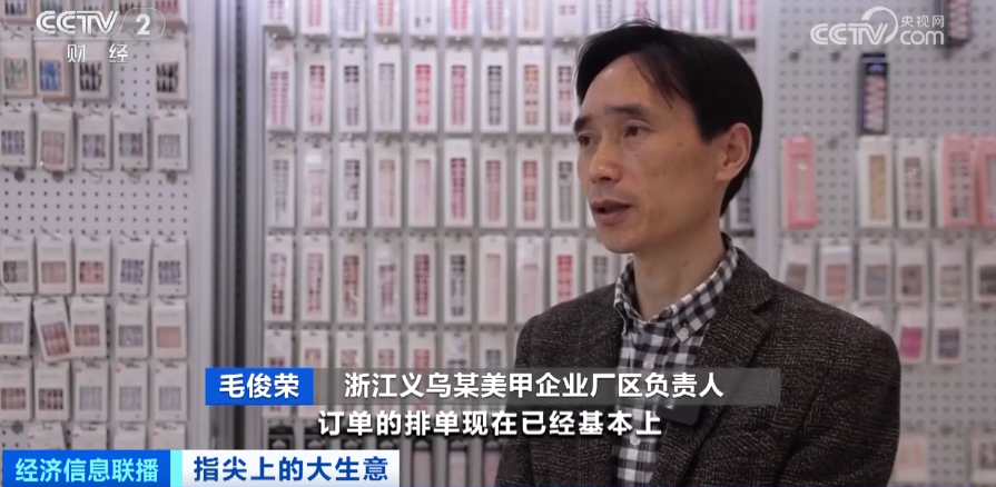 浙江义乌某美甲企业厂区负责人毛俊荣:订单已经排到7月份到8月份。随着市场的变化来提高,还是要引进新设备、提高产能,以适应需求。