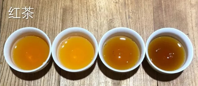 从颜色来看,纯净水泡出的绿茶是极浅的黄色,泡出的红茶颜色也最浅,而矿泉水泡出的绿茶和红茶颜色都最深。