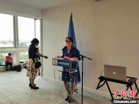 联合国教科文组织协会委员会主席玛丽塔·邦泽弗(MariettaBantchev)致辞。靖树摄