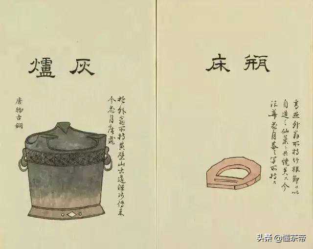 『灰炉』烧水炉的一种。下面没有通风口,现今日本茶道具中发展为火钵或瓶挂。
