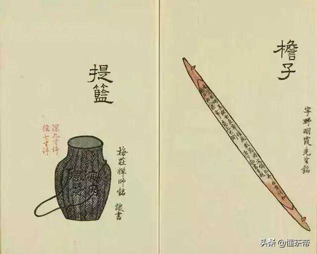 小懂找到了模写了卖茶翁的33件茶具的《卖茶翁茶器图》,全彩绘的木刻图,极为精细。