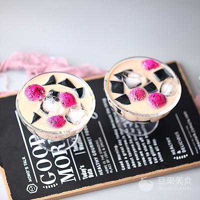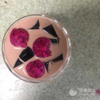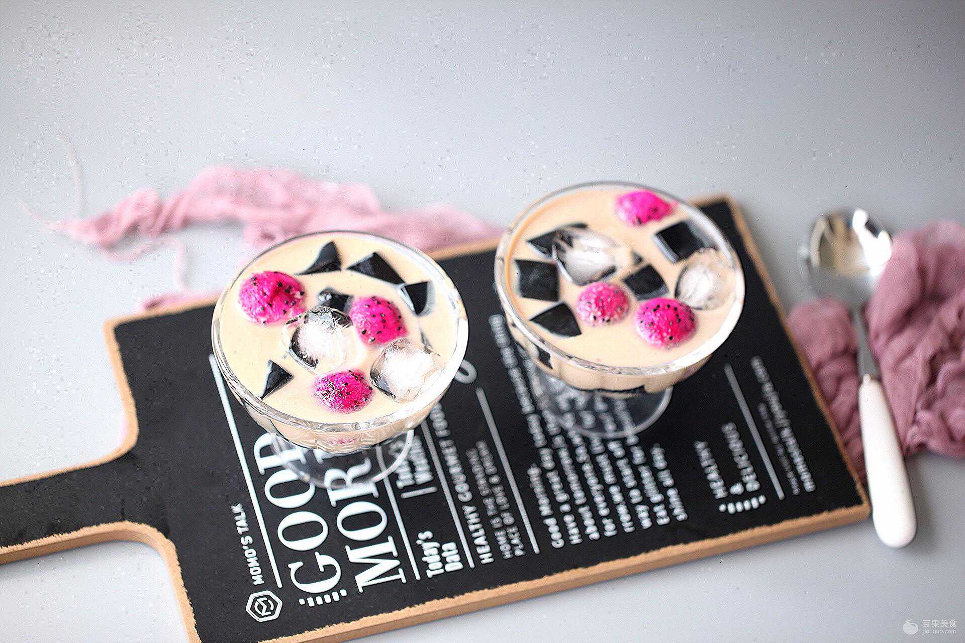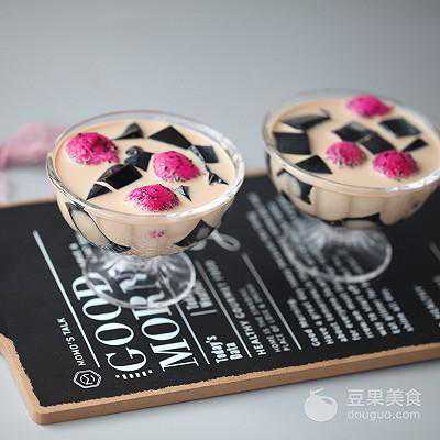 9、放几块火龙果和冰块OK!烧仙草滑滑的像果冻似的配上奶茶很赞!