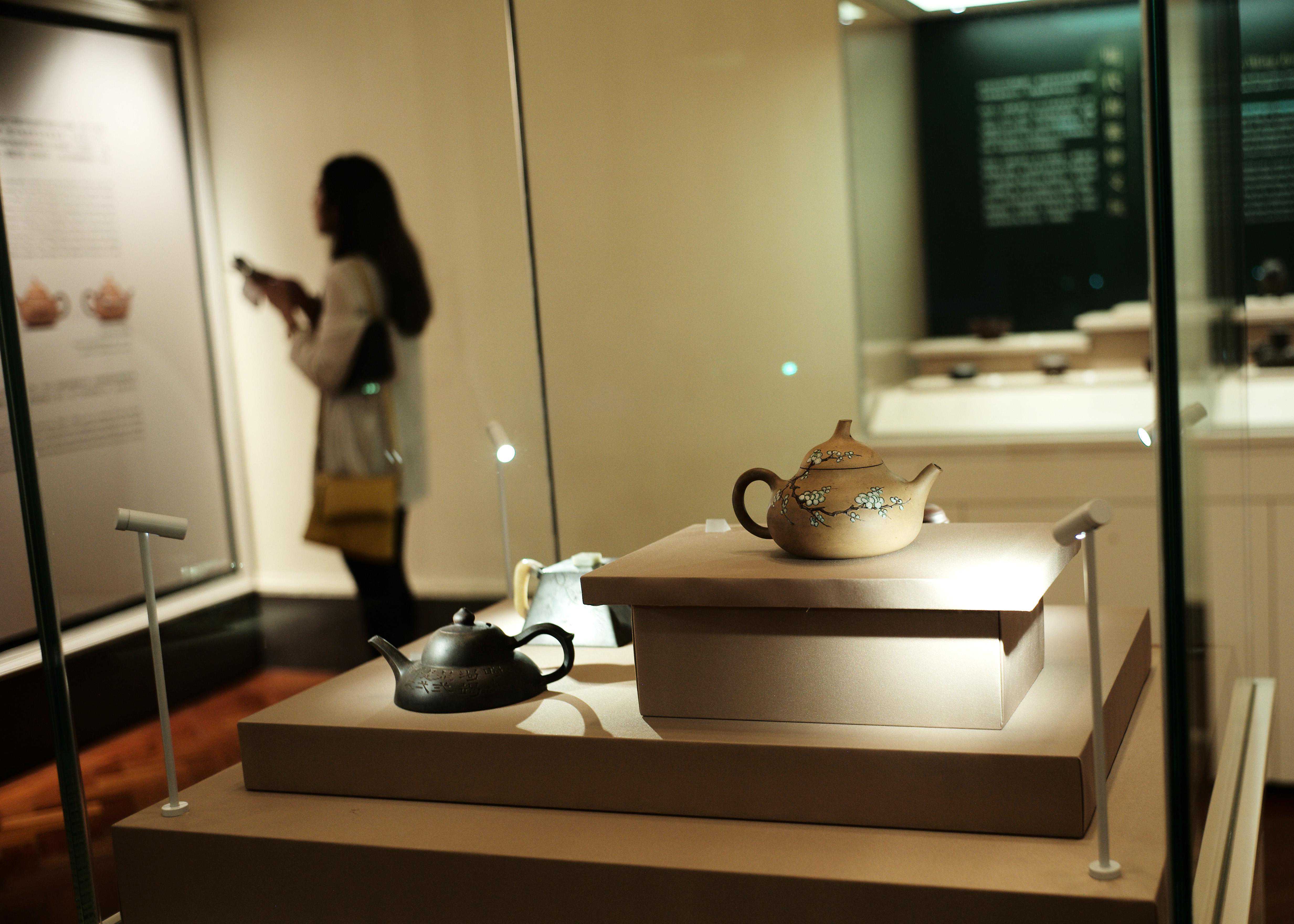 在香港茶具文物馆“文人文玩——中国文人用具与茶生活”展览上展出的茶壶(8月8日摄)。新华社记者李钢摄