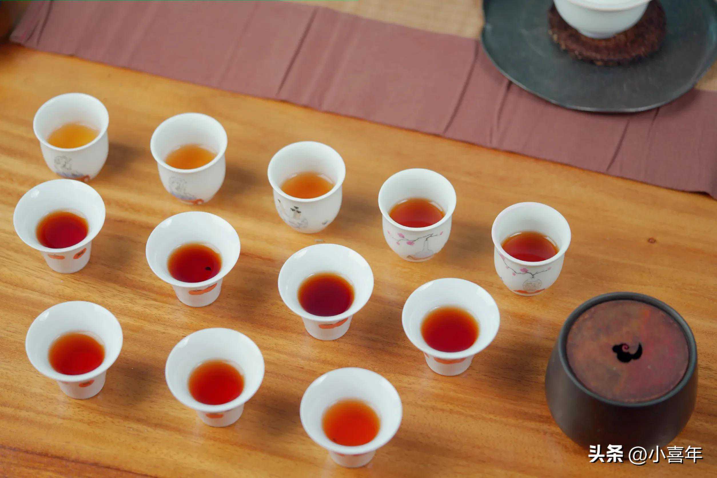 为了探究小青柑的耐泡度,我们记录了小青柑12泡的汤色变化,由左及右,由上至下依次排序。