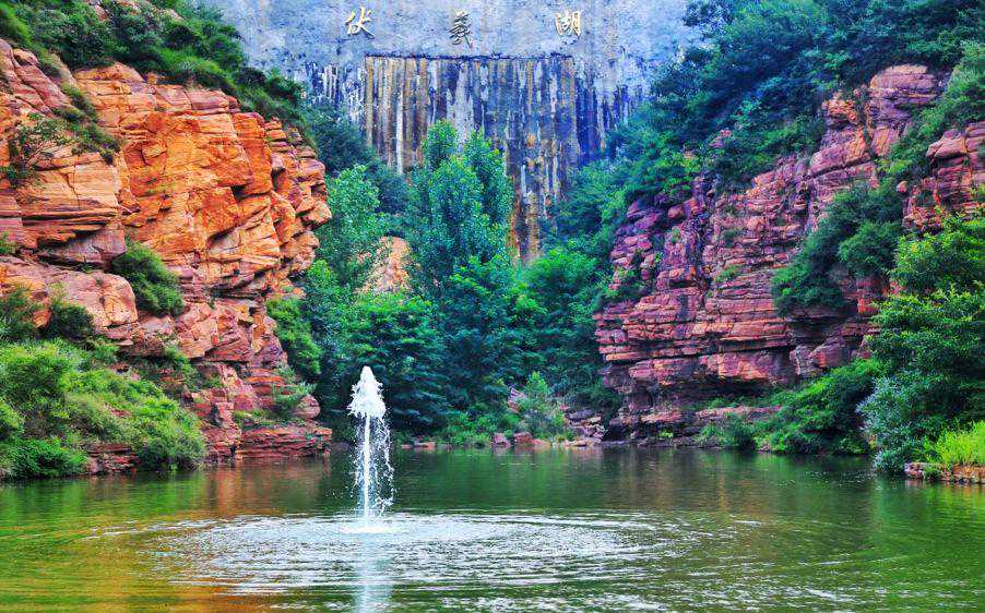 注:万泉湖景区位于林州市南部,大小泉眼数不胜数,汇流成长5000余米,宽100余米,深20余米的湖面,故名万泉湖。