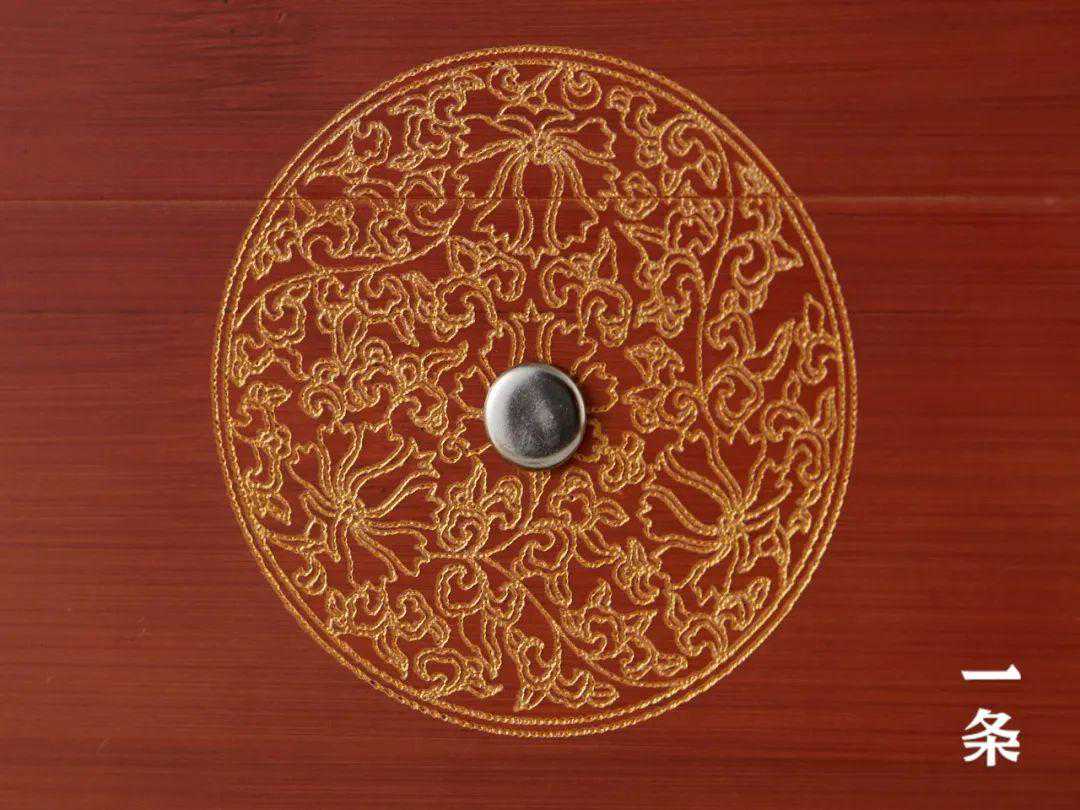 外部竹盒的顶盖有磁吸设计,拿取方便,盒上绘有鎏金花团图案,古色古香。