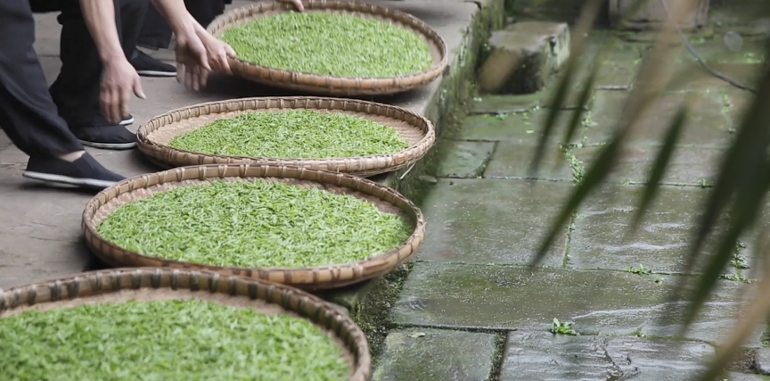 采摘细嫩,标准为单芽或一芽一叶。鲜叶采回后,经过摊放,然后杀青。