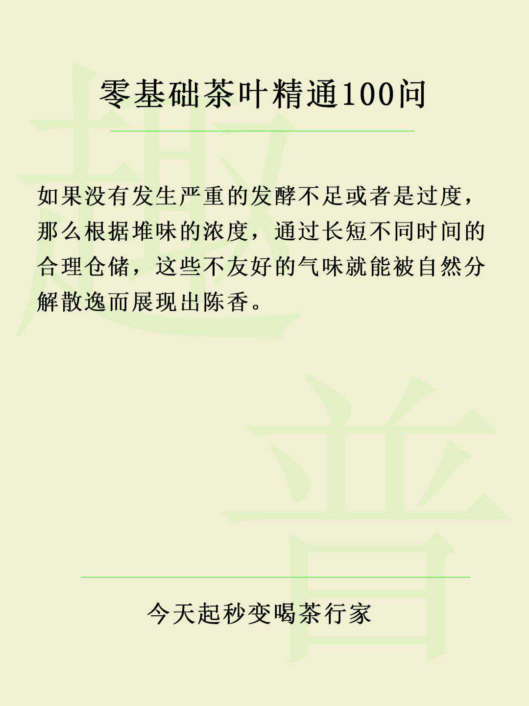 如果没有发生严重的发酵不足或者是过度,那么根据堆味的浓度,通过长短不同时间的合理仓储,这些不友好的气味就能被自然分解散逸而展现出陈香。