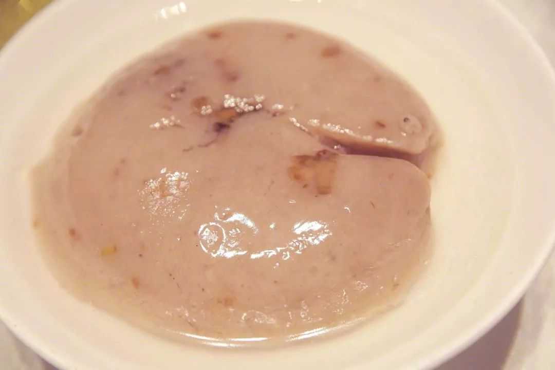 石狮绿岛酒楼的八宝芋泥就更有意思了,和福州全甜的做法不同,芋泥边缘围了一圈勾了芡的糖水,如水围城。中心是咸口的干贝荸荠肉馅,由外向内舀一勺芋泥,就好比引水淹城,甜咸交融,直赴高潮。
