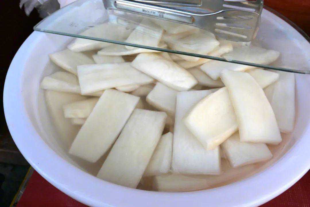 白萝卜,泉州人喊它“菜头”。菜头切片,加盐和甘草腌制2~3天,有自然发酵的酸香,所以得名“菜头酸”,佐餐、当零食可解腻生津,它腌制出来的汁水还能当饮料,有下火的功效。