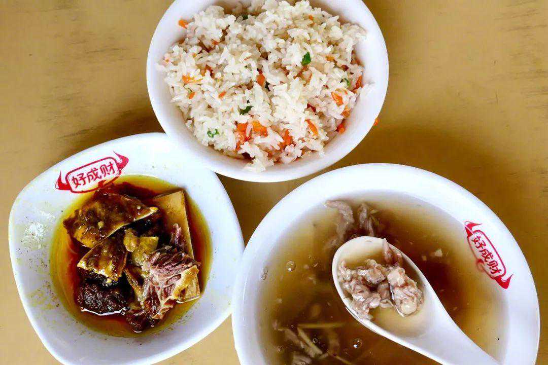 牛腱肉嚼劲十足,牛筋软烂、胶质丰富,牛肚炖煮到位却不失弹牙。随汤无限供应的咸饭和咸菜也不可貌相,咸饭只加了盐和葱头油便滋味十足,自家腌的芥菜咸菜也咸甜下饭。