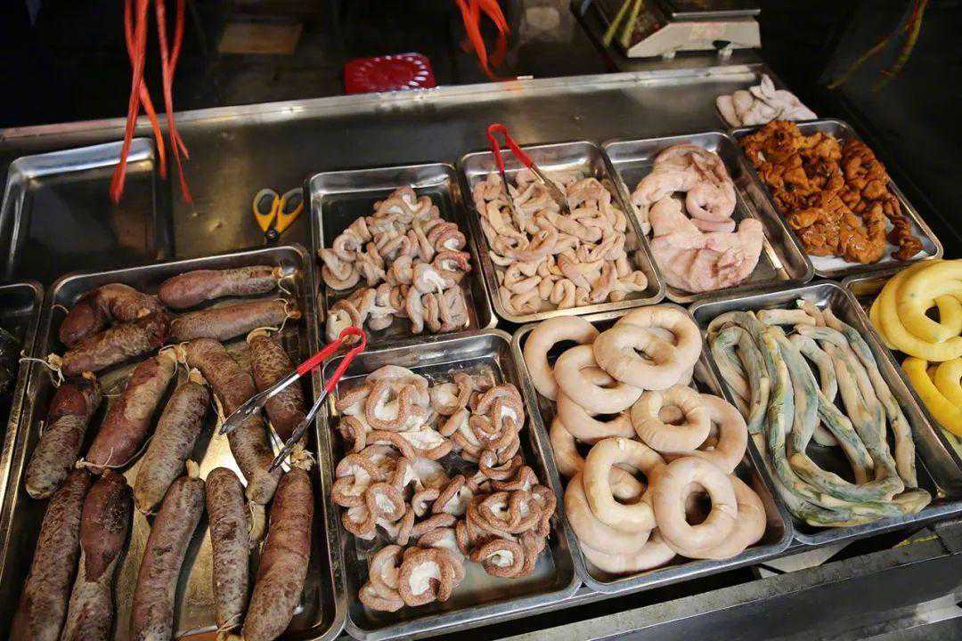 小肠更是被玩坏了,灌蛋、灌葱、灌米、灌血、灌莲子是单一品种,米血双灌是拼配,肠灌肠则是俄罗斯套娃,环环相套,形似内脏版的甜甜圈。