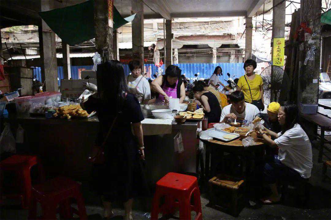 水门国仔是经常被翻牌的老店之一,他们家是骨汤派,坚持用梭子蟹来吊鲜,汤底清甜,鲜味浓郁。醋肉、卤大肠,再来一根油条蘸汤汁,是很多在地人雷打不动的固定搭配。