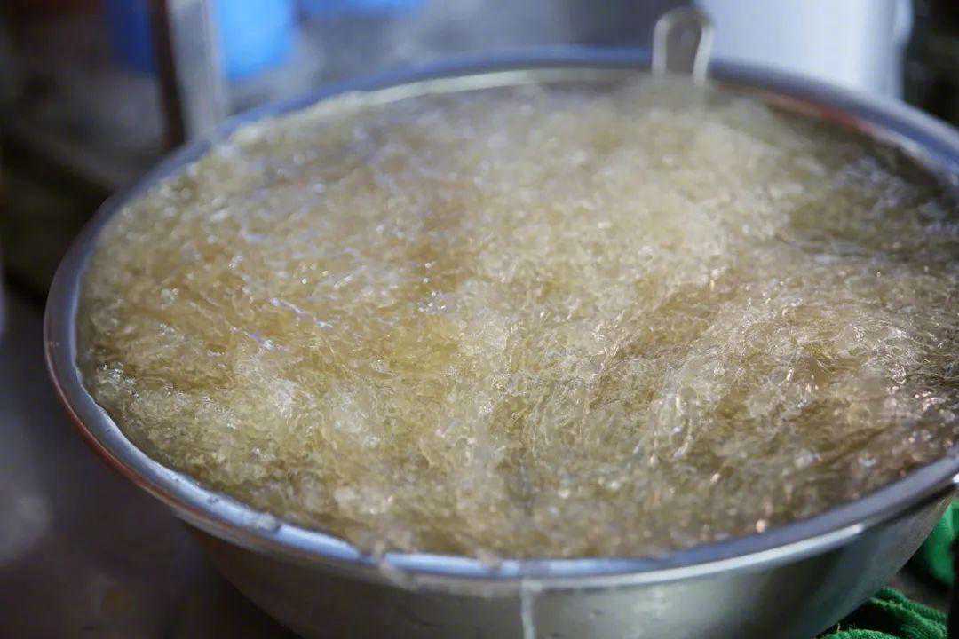 必点的石花膏,用富含胶质的海藻石花草做成,自身没有什么味道,煮过后放凉,会自然凝结成块,吃的时候刨丝。